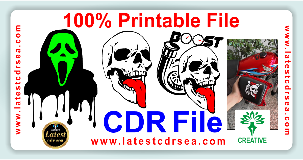 Skull Boost Bike Sticker- Skull Head Skull Tongue Out Skeleton Art Stock Vector Cdr File